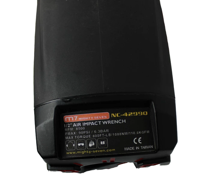 Пневмогайкокрут Mighty Seven NC-4299Q - пневматичний ударний гайковерт промислового класу У моделі є 3-ступінчасте регулювання крутного моменту на закручування і реверс. Максимальне зусилля крутного моменту складає 1088 Нм. Корпус частково виготовлений з композитного матеріалу, що значно зменшує вагу інструменту.
