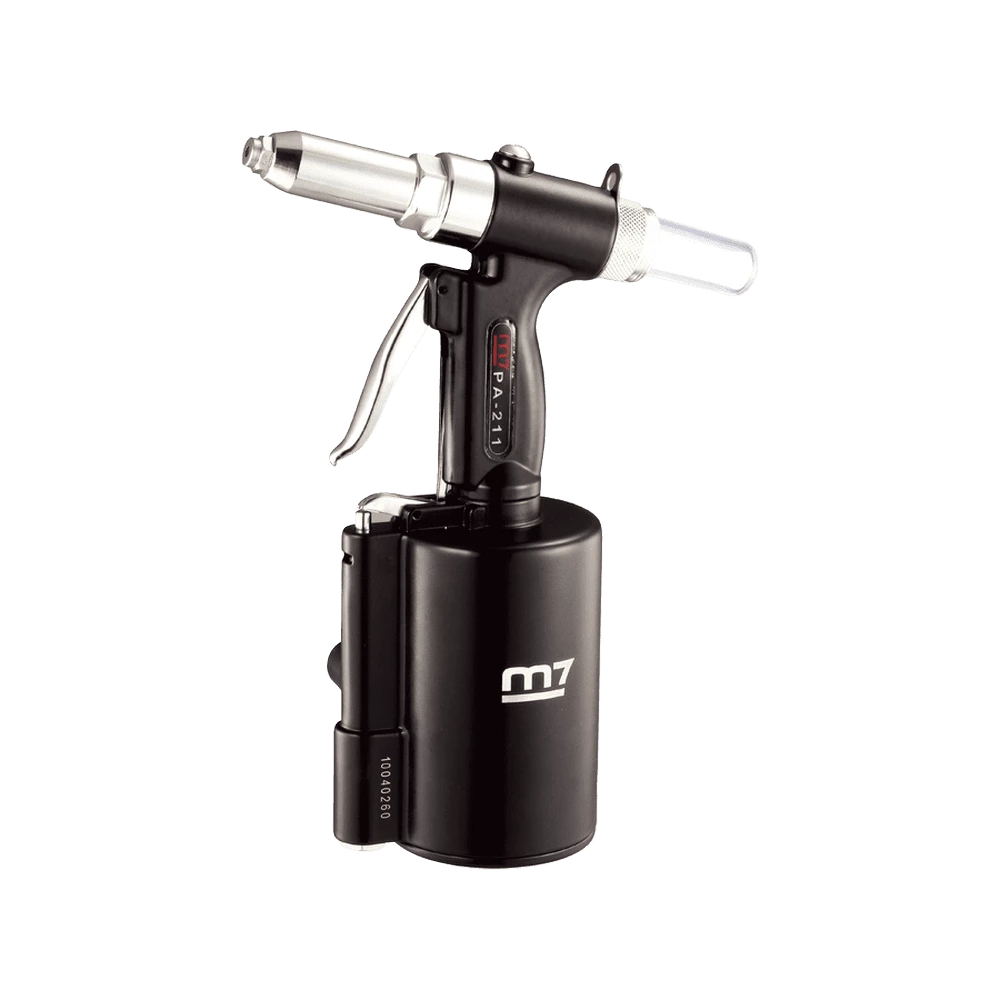 Пневматичний заклепочник Mighty Seven PA-211 - інструмент для скріплення металевих матеріалів між собою за допомогою витяжних заклепок. Цей пневматичний інструмент працює за допомогою стисненого повітря, який надходить до нього з компресора.
