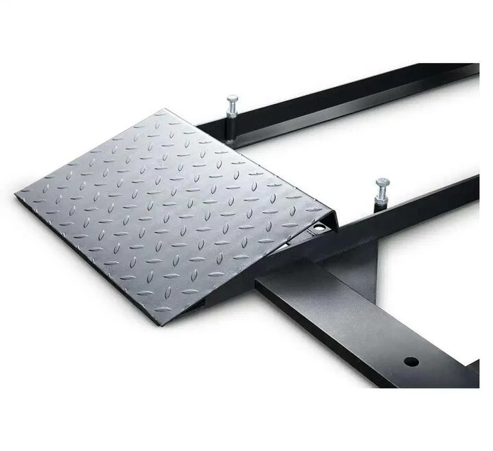 Рифлені пандуси полегшують заїзд автомобіля на платформи. Довжина платформ без пандусів становить 1400 мм, з пандусами - 2030 мм. Загальна ширина - 1880 мм. Цей портативний автомобільний підйомник оснащений ефективними системами безпеки, що гарантує його надійність і довговічність.