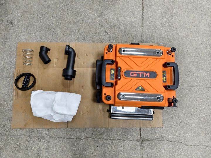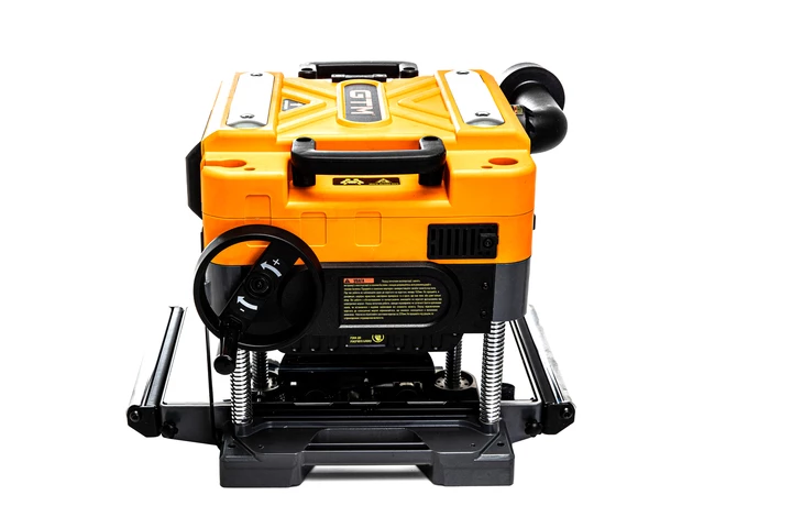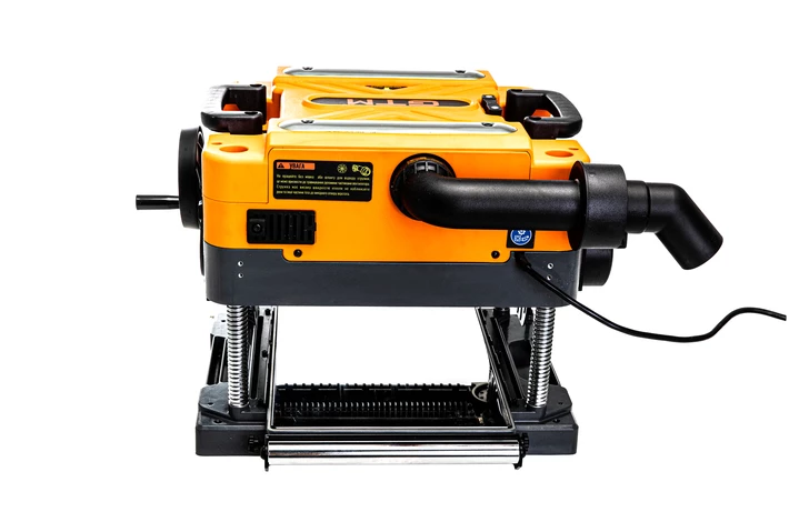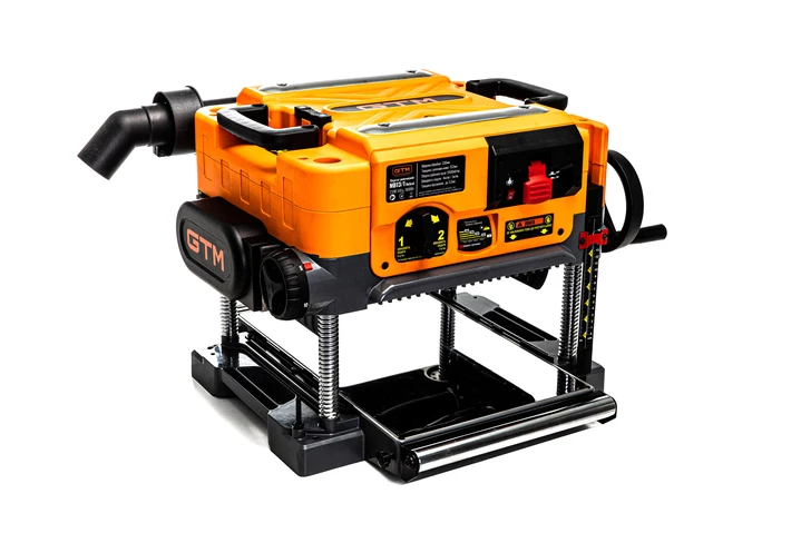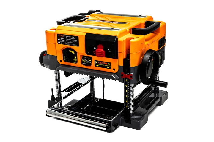 Оснащений трьома прямими ножами, встановленими на валу, що забезпечує чисту та рівномірну обробку поверхні. Максимальна глибина стругання - 3,2 мм. Подавання заготовки можливе з двома швидкостями: 4,0 м/хв і 7 м/хв. Робочий стіл розміром 330?520 мм, підтримується 4-ма гвинтовими синхронізованими направляючими для стабільності подачі. Вбудована система стружковидалення дозволяє ефективно утримувати робочу зону в чистоті.
