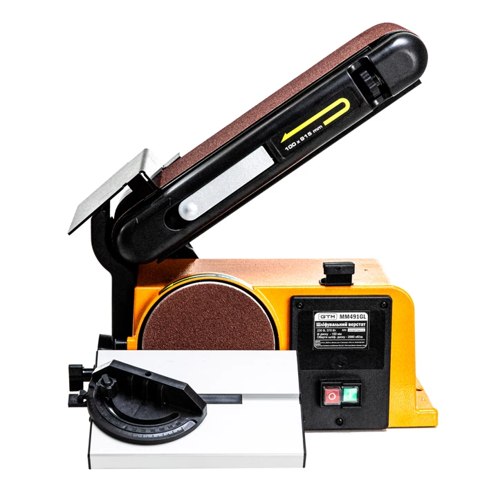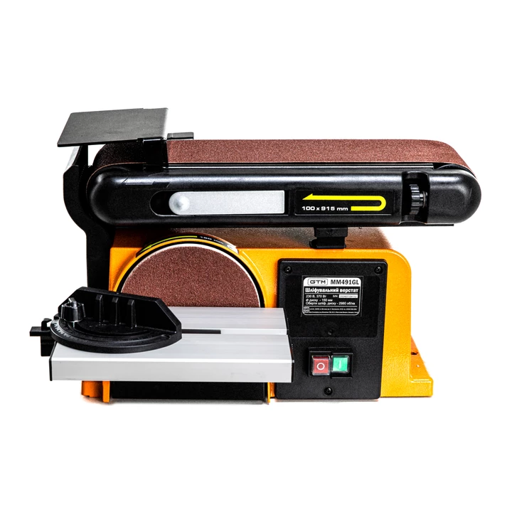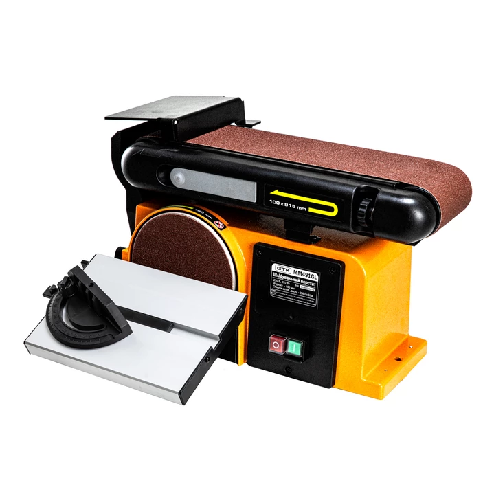 GTM MM491GL - дисково-стрічковий шліфувальний верстат для обробки різних поверхонь. Залежно від обраної зернистості диска і стрічки, верстат підходить як для грубого шліфування, так і для полірування заготовок.