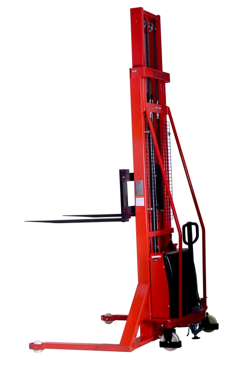 Гідравлічний електричний штабелер Vulkan SDYG-1540 - складське обладнання з гідравлічною системою підйому і електроприводом. Часто використовується для підйому і транспортування вантажів під час навантаження або вивантаження на складах, портах, вокзалах тощо. також за допомогою штабелерів складають товари на невеликих складах і супермаркетах.