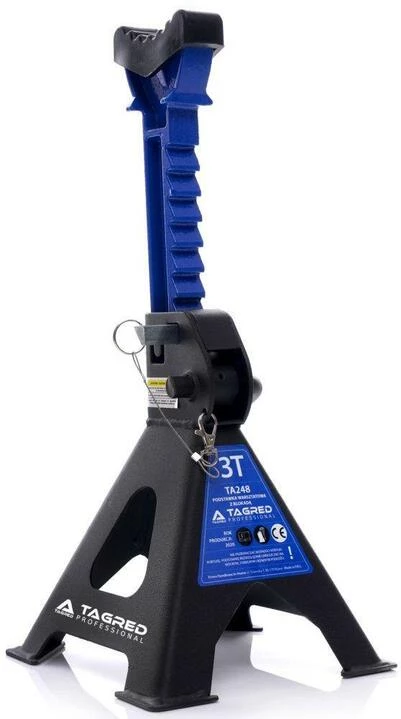 Стійки майстерні під авто посилені, шпильки, замки, гумки 2 шт TAGRED TA248 можуть утримувати предмети вагою до 3 тон. Вони виготовлені з високоякісних матеріалів, мають запобіжник, гумові ковпачки та механізм, який дозволяє дуже точно регулювати висоту на кількох рівнях.