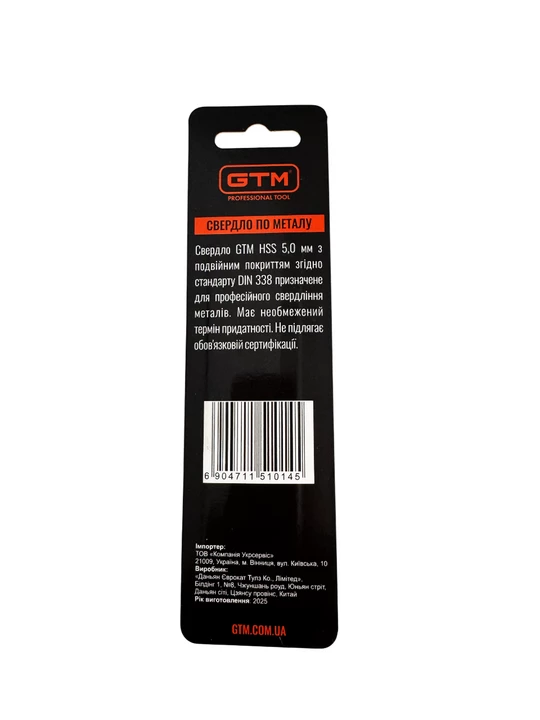 > Свердло по металу GTM 5,0 мм HSS-TiN -2шт