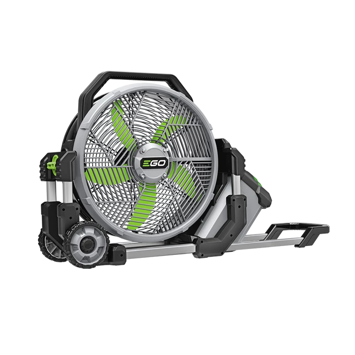 EGO FN1800E - акумуляторний вентилятор професійного класу, що використовується як для охолодження приміщень, так і для відкритих просторів площею 50 кв.м. Живиться від універсальних акумуляторів EGO Power+ з напругою 56 В. Особливістю цієї моделі є вбудована система туманоутворення (зволоження).
