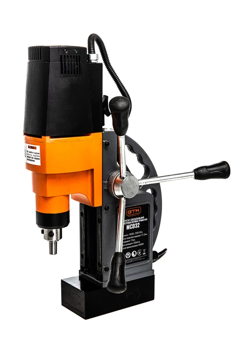 Свердлильний верстат MCD32 (1400 Вт, 450 об/хв) призначений для свердління отворів у металі за допомогою коронок або свердел. Потужність двигуна — 1400 Вт, оберти шпинделя — 450 об/хв. Оснащений електромагнітним тримачем із силою притягування 14000 Н, що забезпечує надійну фіксацію на вертикальних і горизонтальних поверхнях. Має хід шпинделя 175 мм. Діаметр свердління коронкою — від 12 до 32 мм, спіральним свердлом — до 16 мм. Підтримується кріплення оснастки Weldon 19,05 мм або під патрон 16 мм.