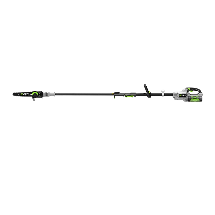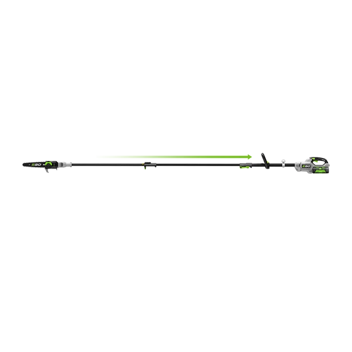 EGO PS1003E KIT - акумуляторний висоторіз професійного класу, що використовується для обрізки крони дерев і кущів. Призначений для використання комунальними господарствами, садівниками та ландшафтними дизайнерами. Інструмент обладнаний безщітковим двигуном постійного струму і телескопічною штангою з вуглеволокна для максимального полегшення ваги. Висоторіз живиться від універсальних акумуляторів EGO Power+ з напругою 56 В.