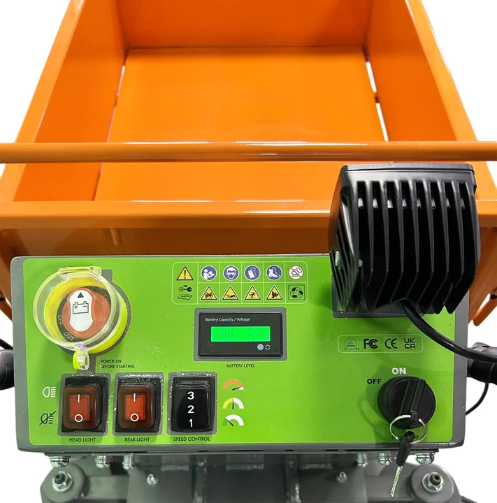 Акумуляторний міні транспортер E50M/32A з великою потужністю та батареєю на 32А, корисний і надійний помічник протягом усього року для виконання задач повязаних х транспортуванням землі, гравію, каміння, сміття і багато інших різних матеріалів та вантажів. Це робить його ідеальним помічником на будь-який будівельному майданчику, в лісовому та сільському господарстві, в складах а також для озеленення прибудинкових територій.