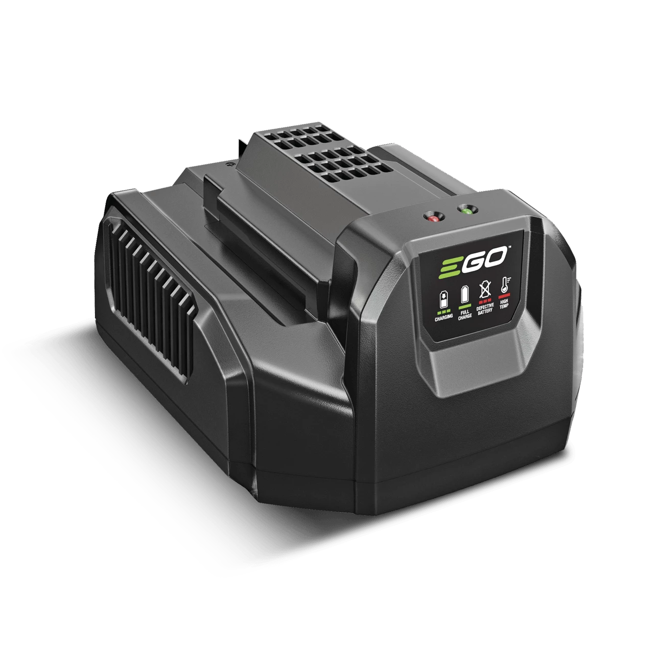 Зарядний пристрій EGO CH2100E застосовується для зарядки акумуляторних батарей садової техніки EGO 56V. Модель має розумну систему контролю стану акумулятора з LED-індикатором процесу заряджання.