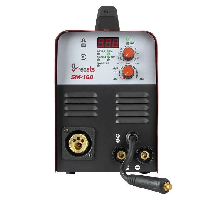 Зварювальний апарат REDATS SM-160 MIG/MAG, Lift TIG, MMA, дріт Flux - це багатофункціональне обладнання, що підтримує 3 методи зварювання: MMA (штучно покритим електродом), MIG/MAG (в середовищі захисного газу) і TIG Lift (неплавким вольфрамовим електродом). Дозволяє працювати з різними матеріалами товщиною 1-6 мм. Працює на основі інверторної технології, яка забезпечує стабільність зварювального струму і знижене споживання електроенергії. Живлення від мережі 230 В.
